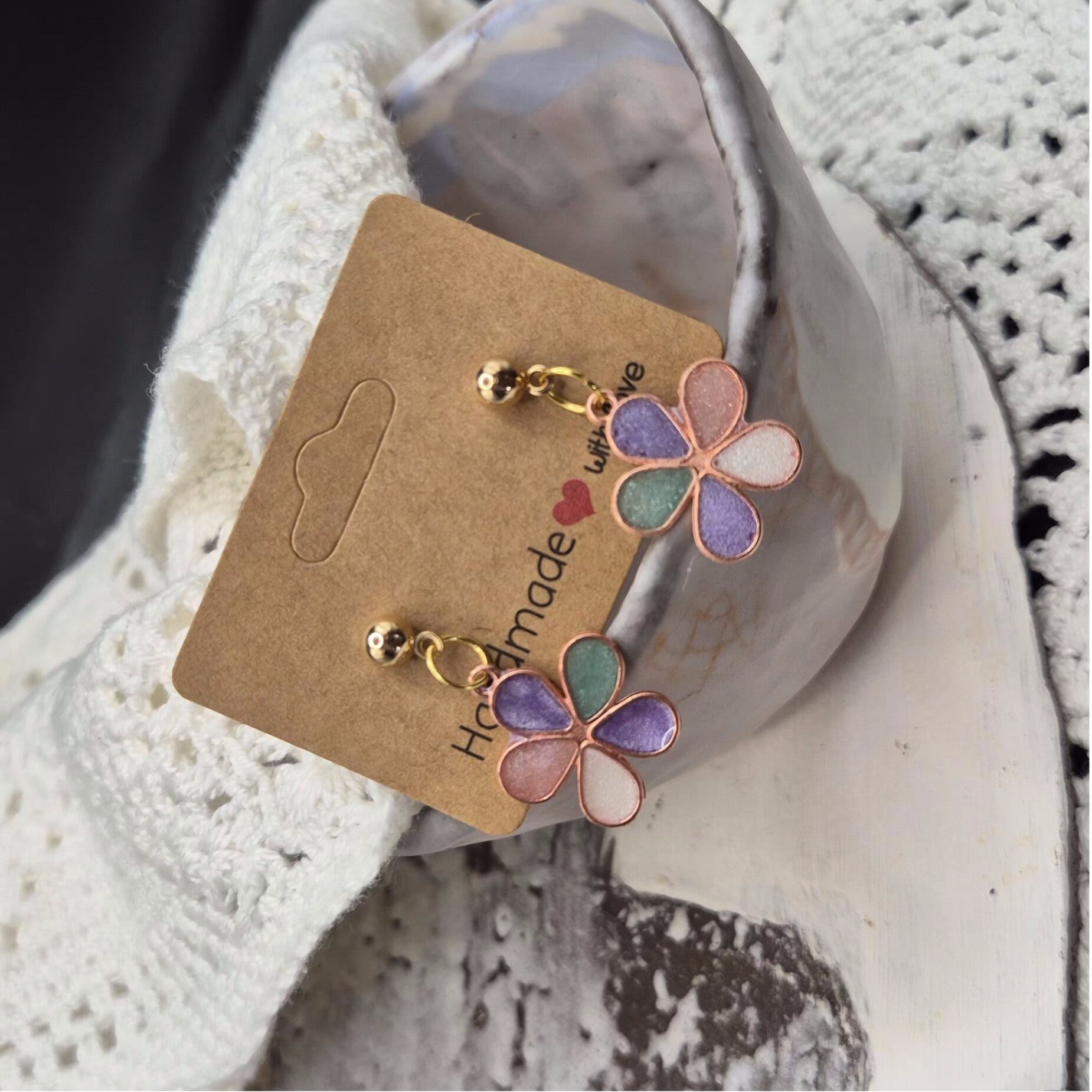 Jolie petite paire de Marguerite aux couleurs pastel montées sur un clou doré en acier inoxidable